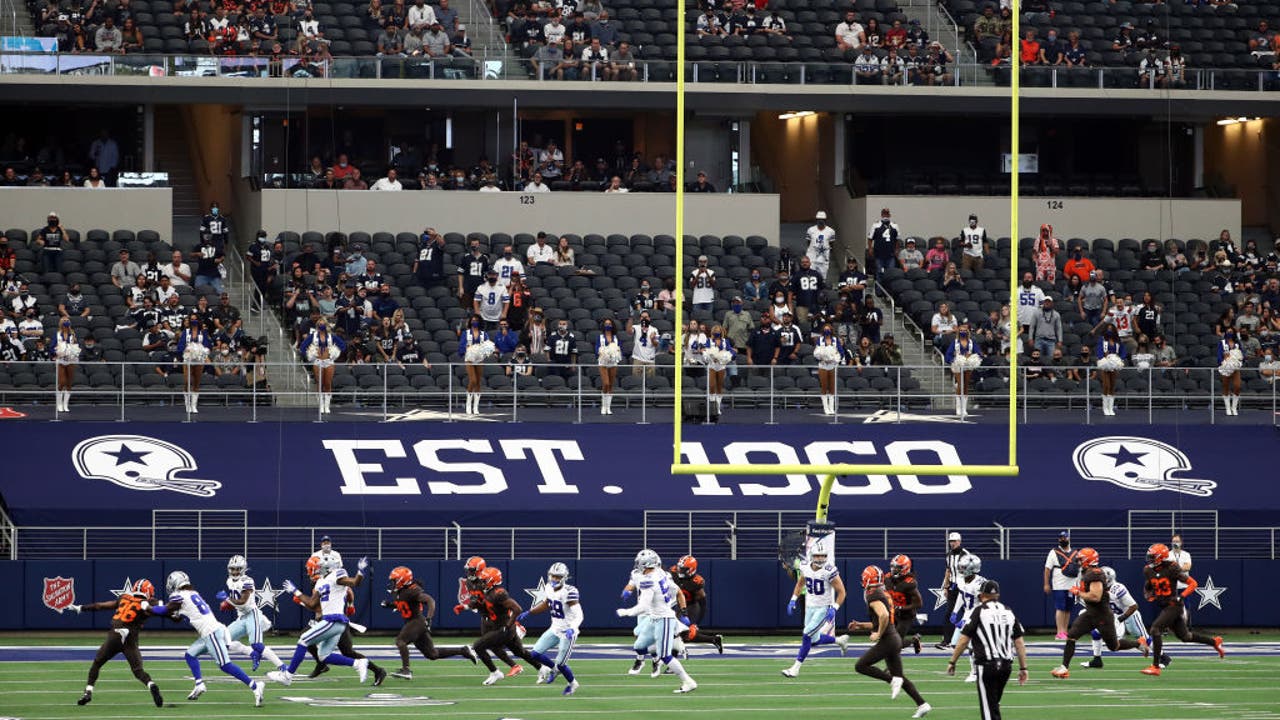 ARLINGTON, TEXAS - OCTOBER 04: A general view of play between the Cleveland Browns and the Dallas Cowboys in the first quarter at AT&T Stadium on October 04, 2020 in Arlington, Texas. (Photo by Ronald Martinez/Getty Images)