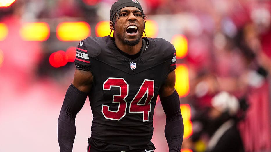 GLENDALE, AZ - OCTOBER 05: Jalen Thompson #34 of the Arizona Cardinals runs out of the tunnel prior to an NFL football game against the Tennessee Titans at State Farm Stadium on October 5, 2025 in Glendale, Arizona. (Photo by Cooper Neill/Getty Image