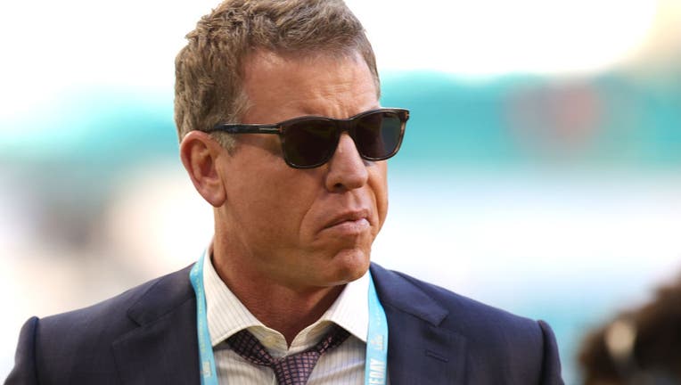 MIAMI, FLORIDA - FEBRUARY 02: Former player Troy Aikman arrives at Super Bowl LIV at Hard Rock Stadium on February 02, 2020 in Miami, Florida. (Photo by Rob Carr/Getty Images)
