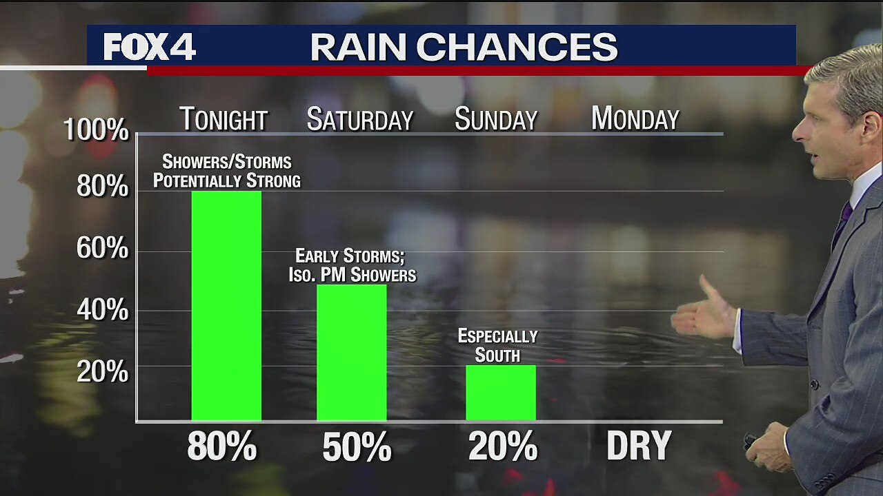 There is a marginal chance of severe weather for North Texas tonight, with strong storms possible north of the Metroplex.