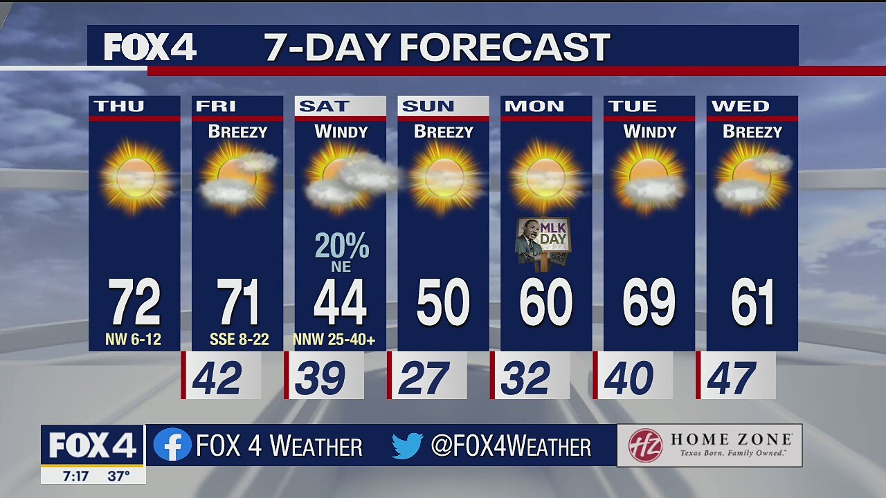 FOX 4 Weather meteorologist Evan Andrews says it's going to be a nice day with lots of sun and light winds. Then a strong cold front blows in with much colder temperatures.