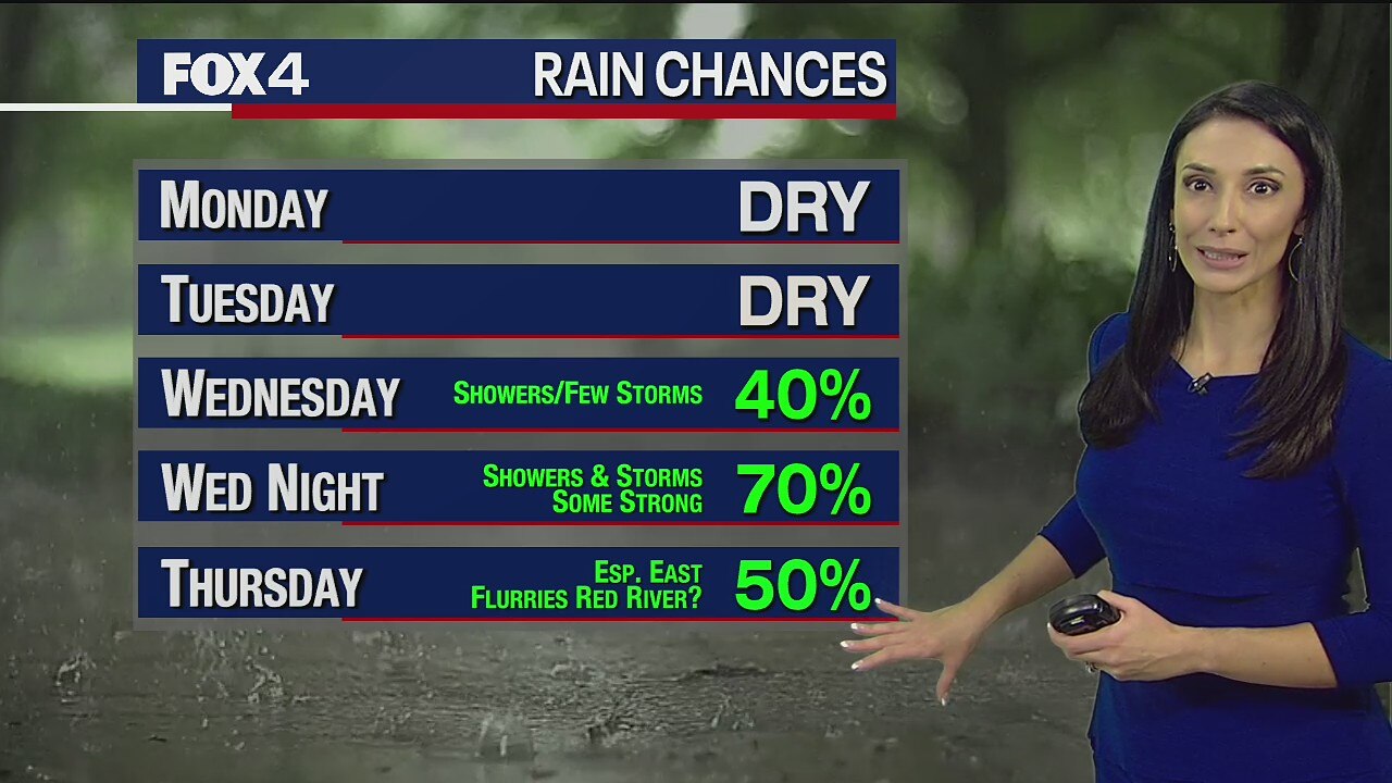 It should be dry here in North Texas until Wednesday, when rain enters the forecast.
