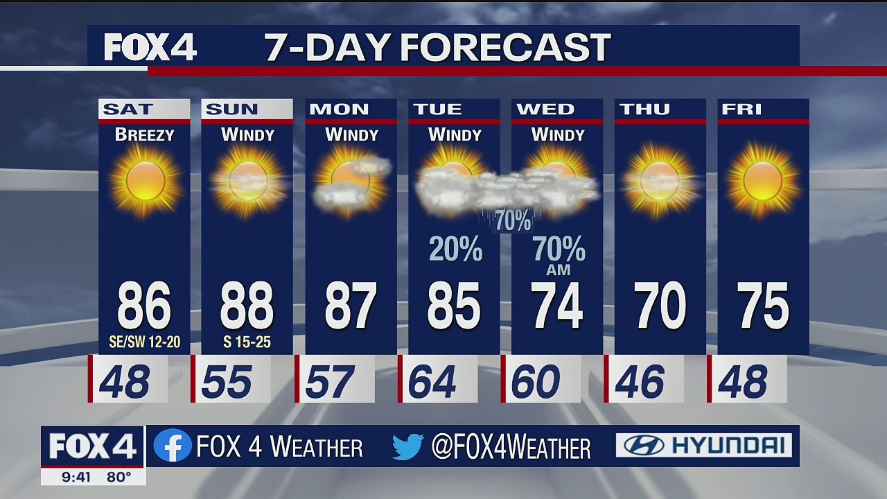 Should be a nice weekend here in North Texas, before rain chances come into the forecast on Tuesday.