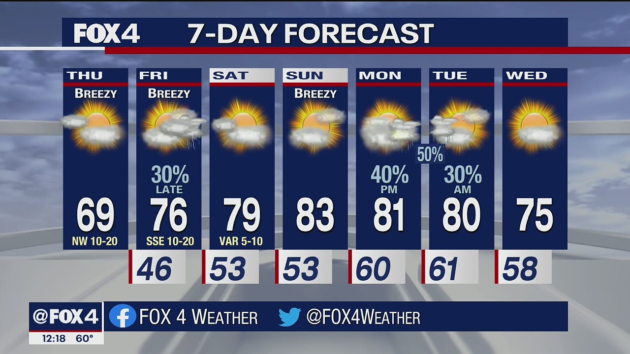 We're in for a mostly sunny Thursday here in North Texas, before there are some rain chances in the forecast for Friday.