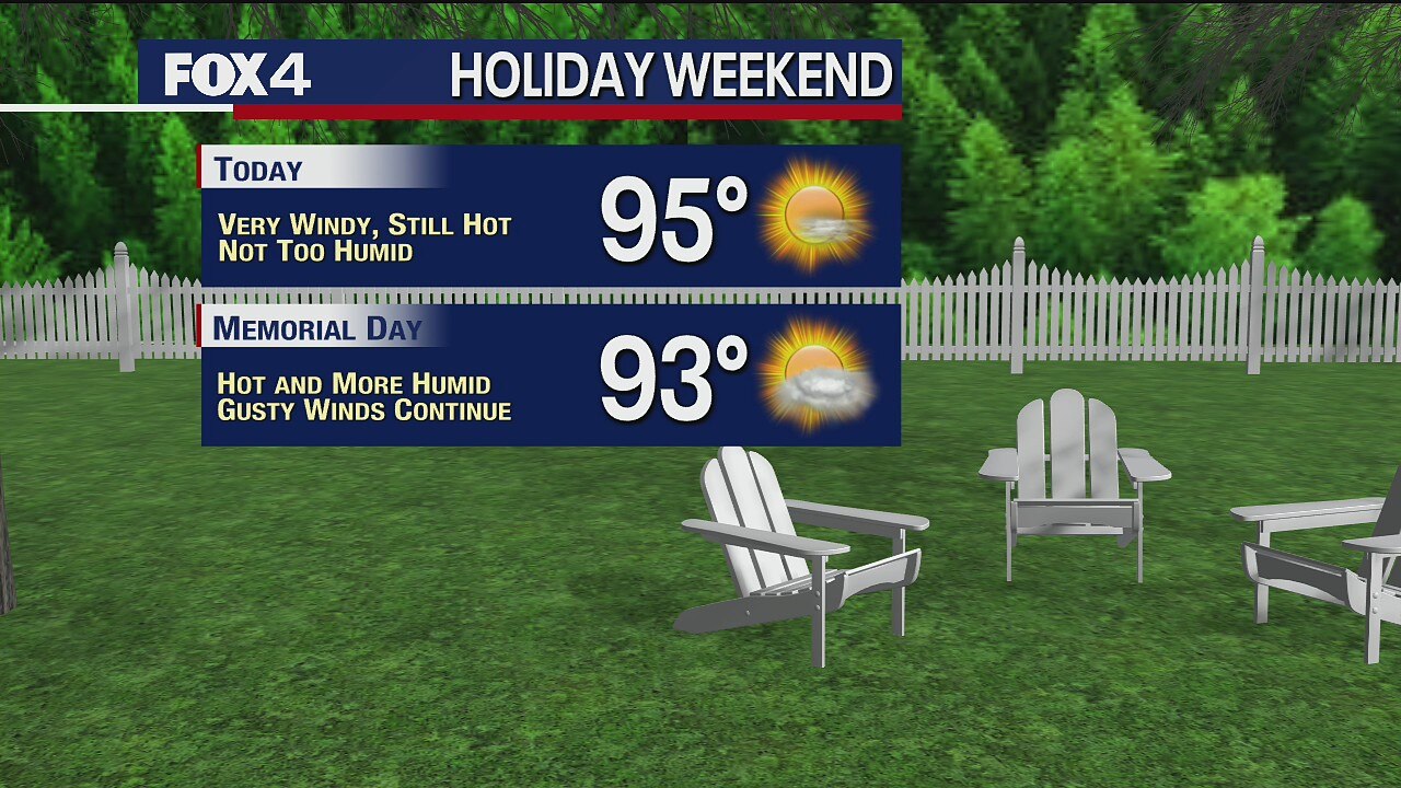 It will be a hot Sunday and Memorial Day, with temperatures in the 90s here in North Texas.
