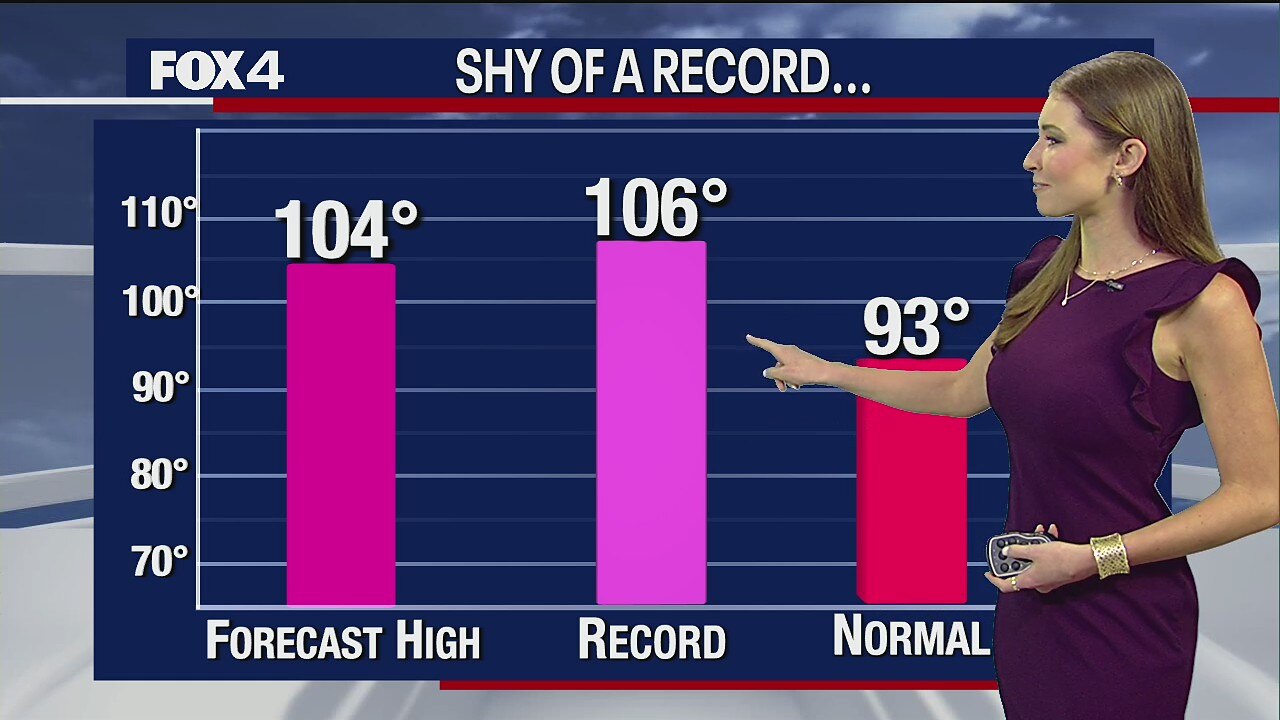 FOX 4 Weather meteorologist Kylie Capps says the forecast calls for temperatures above 100 degrees today. We won't break a record, though.