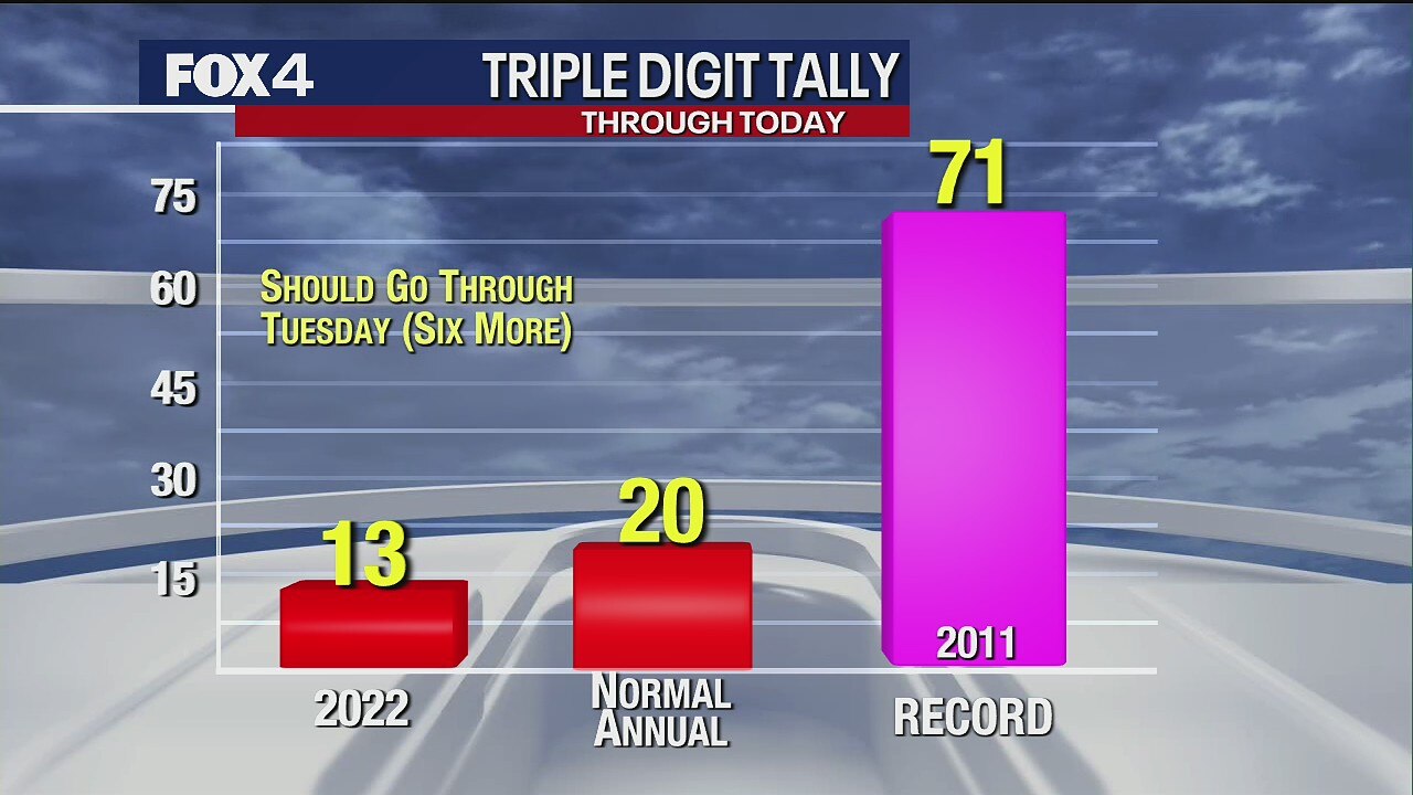 FOX 4 Meteorologist Evan Andrews says there's more of the same in the forecast. The triple digit temps will stick around for at least the next six days.