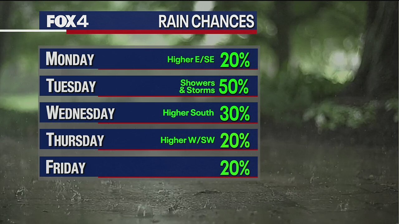 Rain chances come back into the forecast Monday, and stick around for the rest of the week.