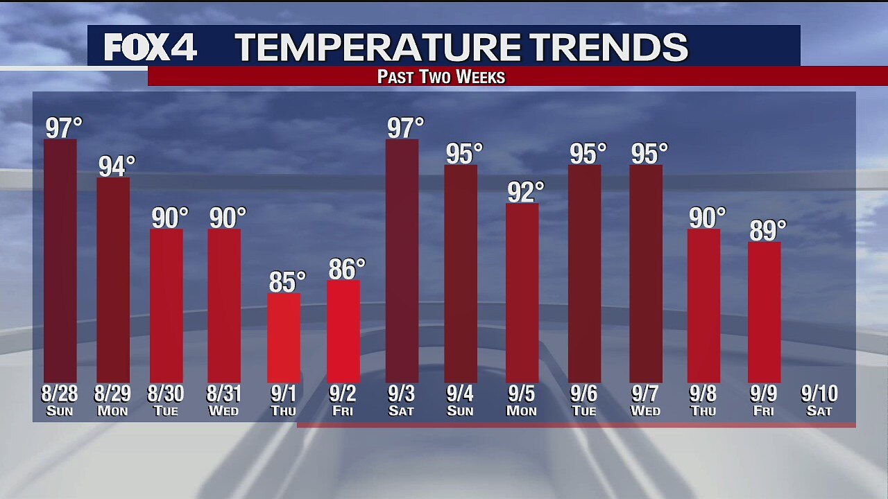 It's set to be in the 90s Saturday, before temperatures stay in the 80s the next couple of days.