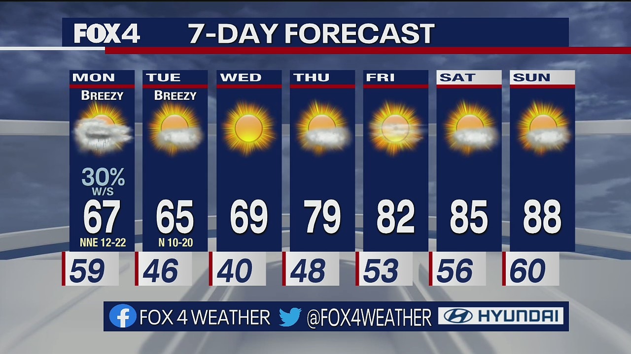 Temperatures will be in the 60s the next few days, before they go back into the 80s by the end of the week.
