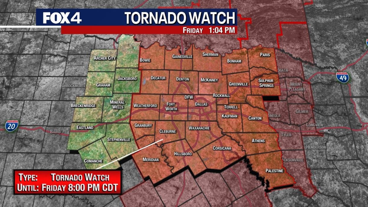 FOX 4 meteorologists Dan Henry and Ali Turiano break down today's chances of severe weather and are tracking strong winds through the area. Much of North Texas is under a tornado watch until 8 p.m.