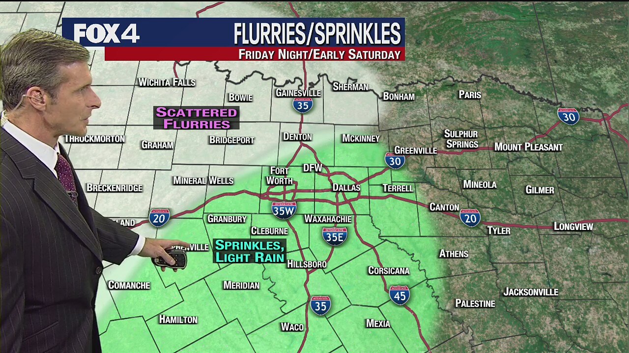 There is a chance parts of North Texas could see some snow flurries Friday night into Saturday morning.