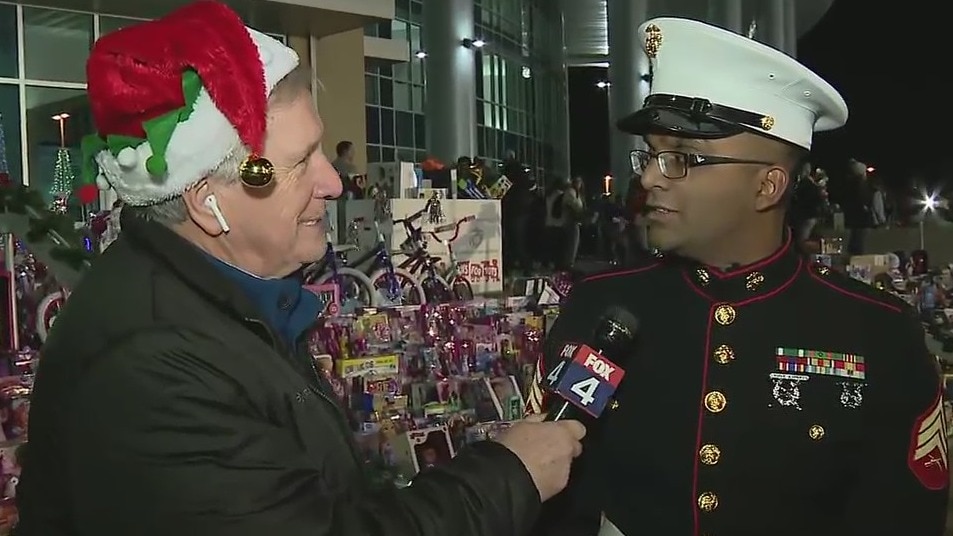 FOX 4's Mike Doocy spoke to people attending the Toys For Tots event at the Dr. Jim Vaszauskas Center for the Performing Arts.