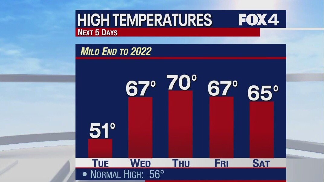 It will be a pretty mild end to 2022 after last week's freezing temperatures. FOX 4 meteorologist Dan Henry takes a look at the warming trend, the chance for rain and what things will look like on New Year's Eve celebrations.