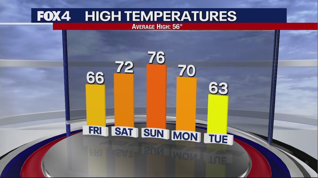 Temperatures should get into the 70s over the weekend across North Texas, before there is a chance for severe weather Monday.