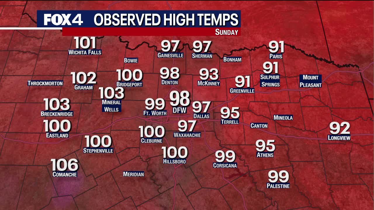 We'll likely be back to triple digit heat on Monday.