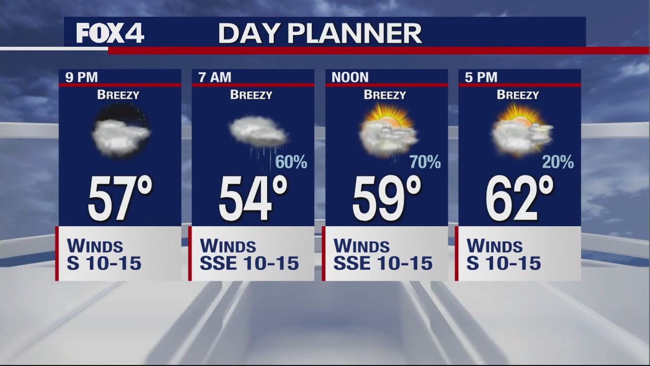 Rain chances enter the forecast overnight, with rain expected in parts of North Texas Thursday morning.