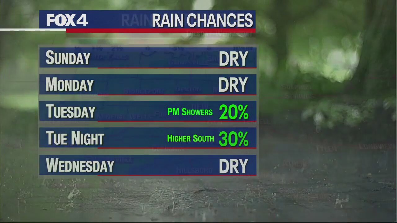 It will be dry for fireworks on New Year's Eve, before rain chances come into the forecast on Tuesday.