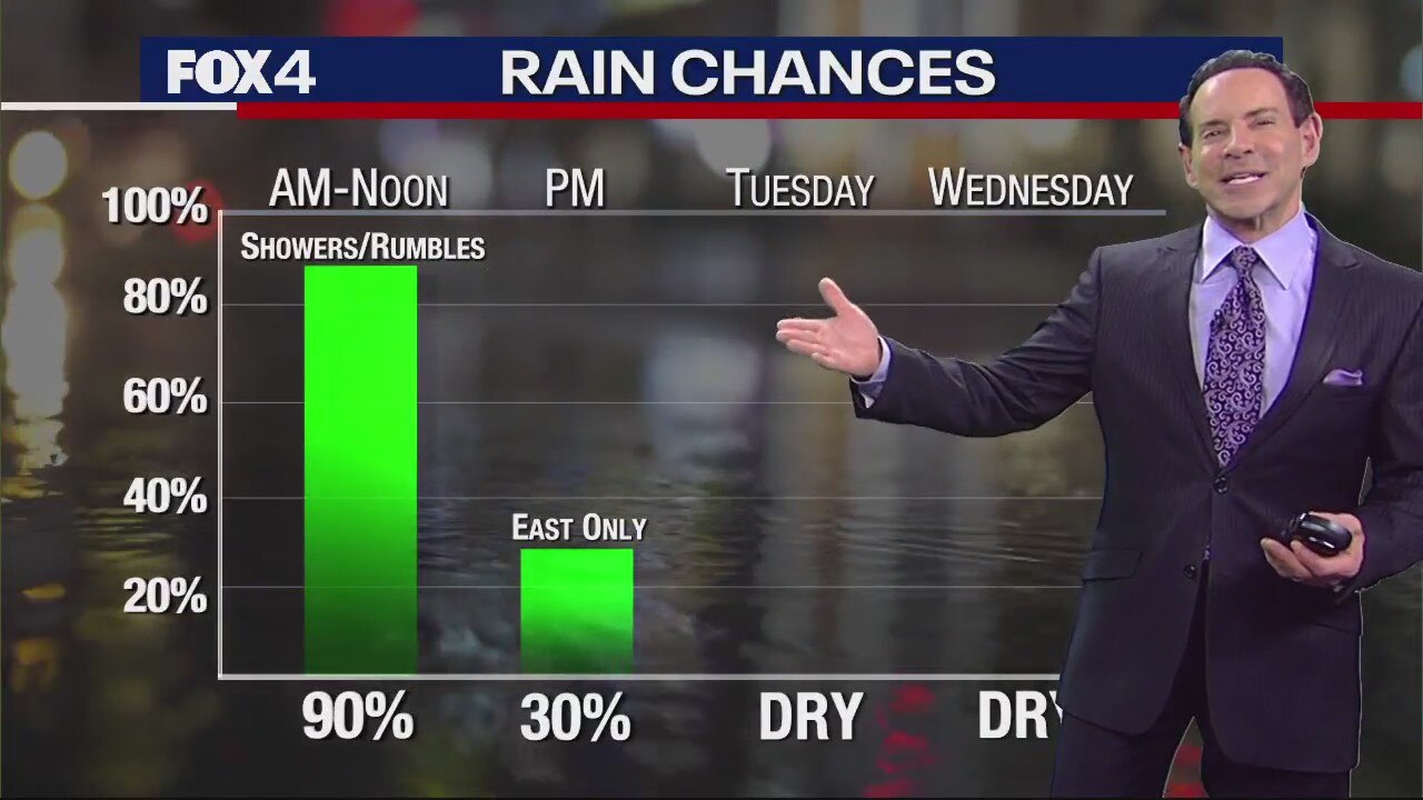 FOX 4 Weather Meteorologist Evan Andrews talks about the rain chances on Monday and some colder weather in the forecast.