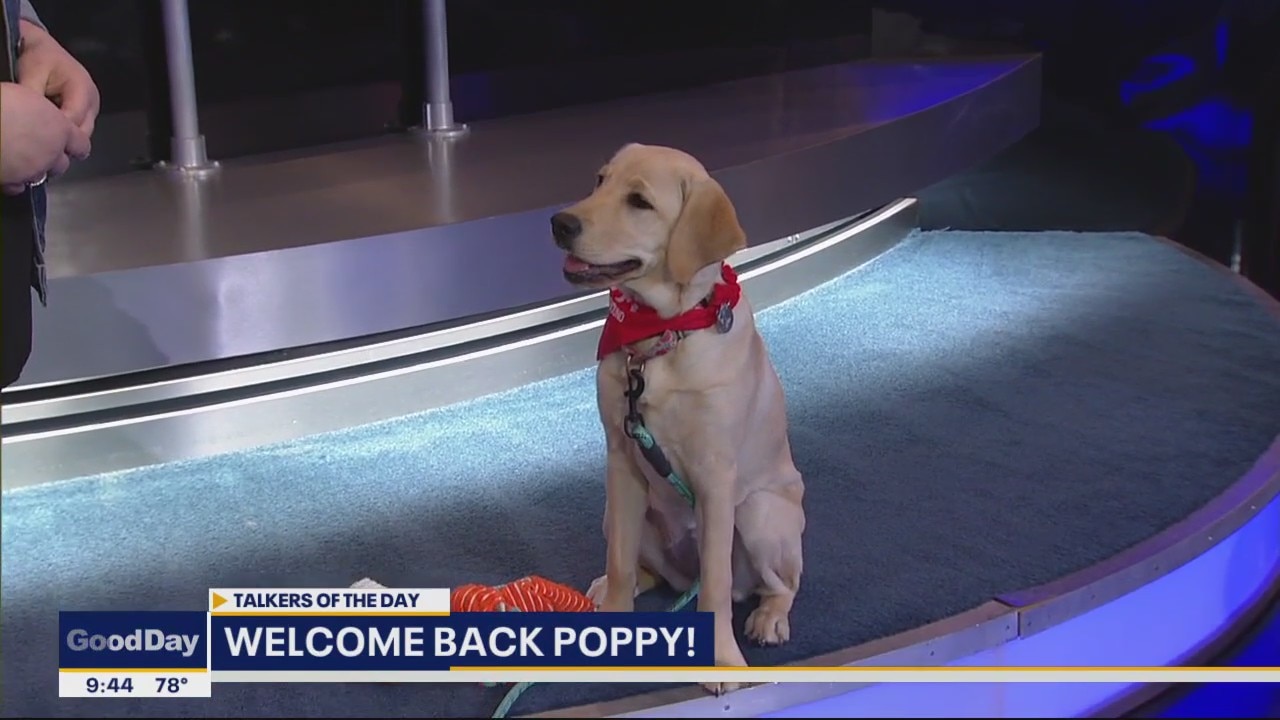 A member of the Good Day team who hasn't been on TV in a while is back in the studio for an update. Poppy is being trained as part of Guide Dogs of Texas.