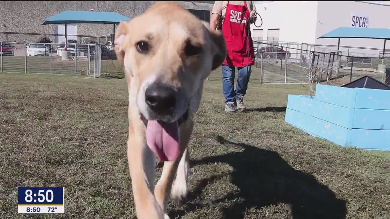 The playful 7-year-old lab is looking for a forever home. If you are interested in adopting Chex, visit SPCA.org or call (214) 742-7722.