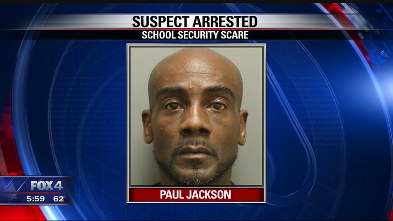 A man who walked into an elementary school in Denton with a pocketknife in his hand was arrested Monday morning.