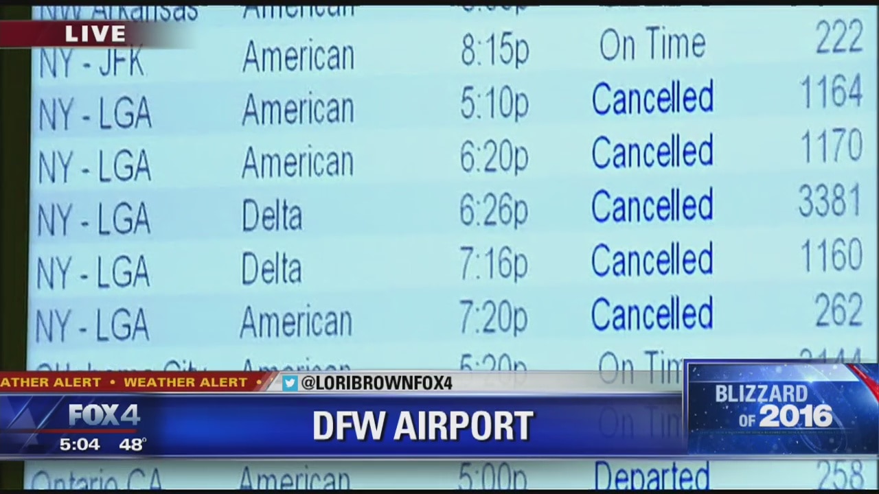 Flights throughout the weekend to East Coast cities are canceled from DFW and Love Field.