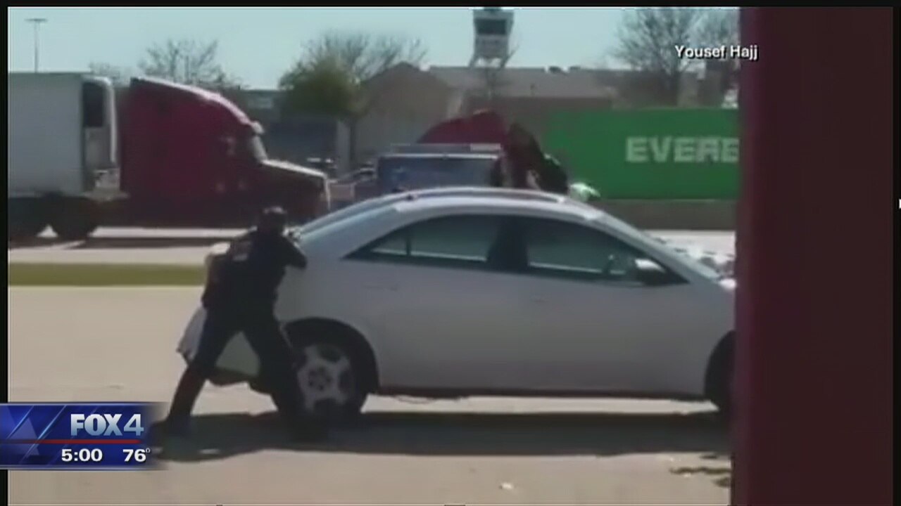 Video taken by a bystander shows Irving PD shooting a robber/hostage taker dead on Friday afternoon.