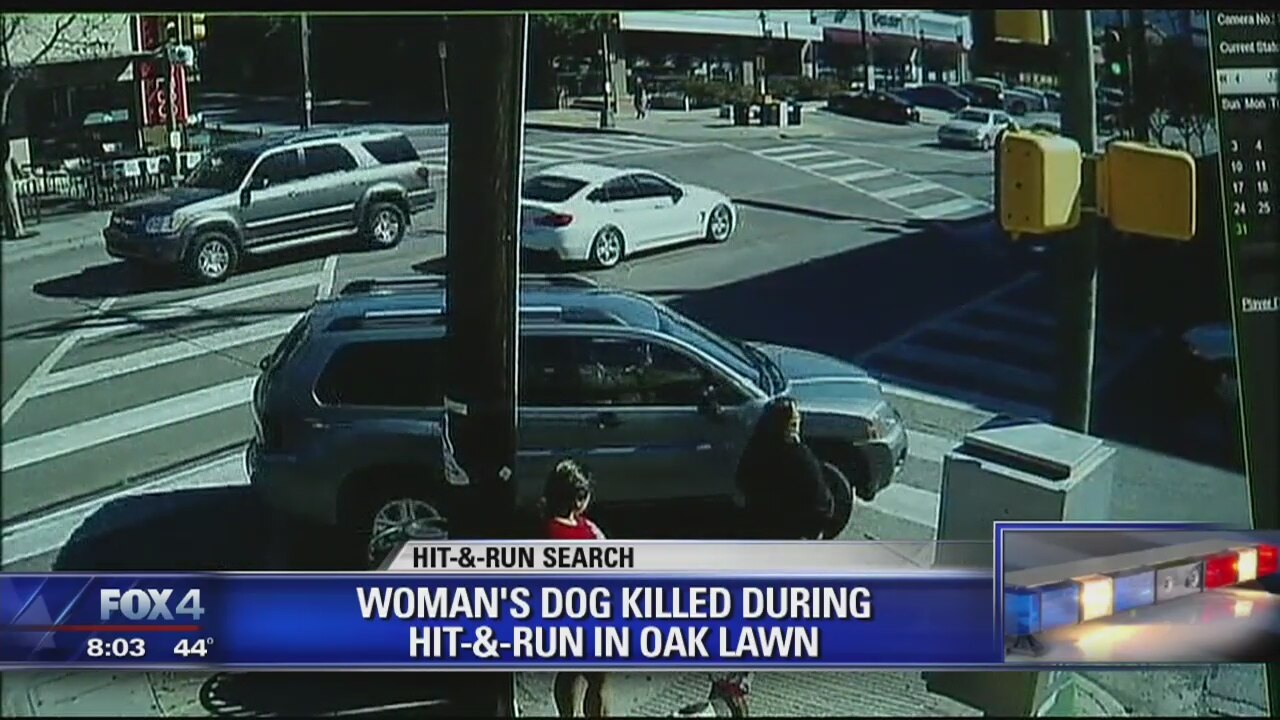 Surveillance video shows the SUV hit a Dallas woman and kill her dog.