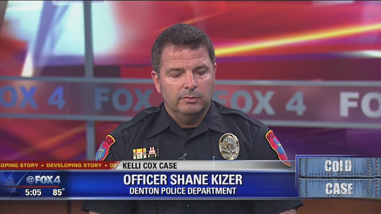 An officer with the Denton Police Department stopped by the FOX 4 studios to give an update on the Kelli Cox case.