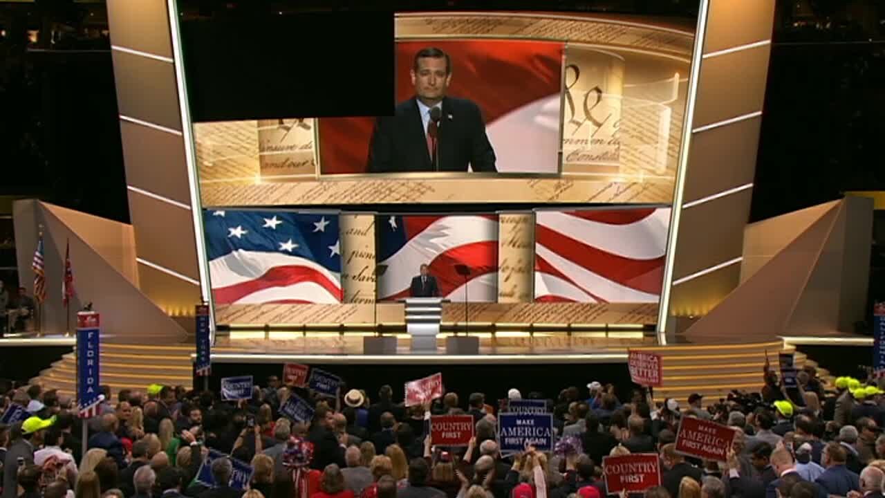 Boos filled the convention hall in Cleveland as one-time presidential candidate Ted Cruz finished his prime-time speech to Republican activists.