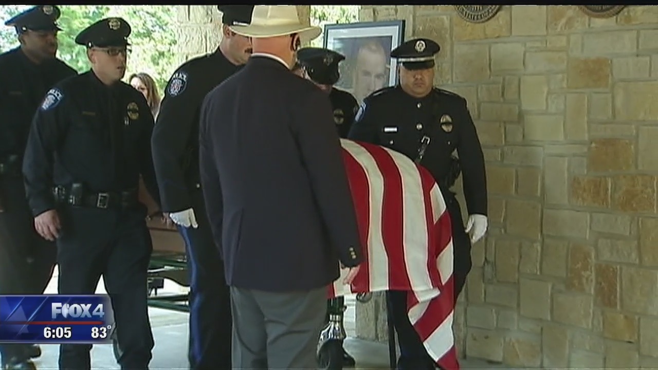 The SMU police officer who died when his car was swept into Turtle Creek in Dallas was buried Monday.