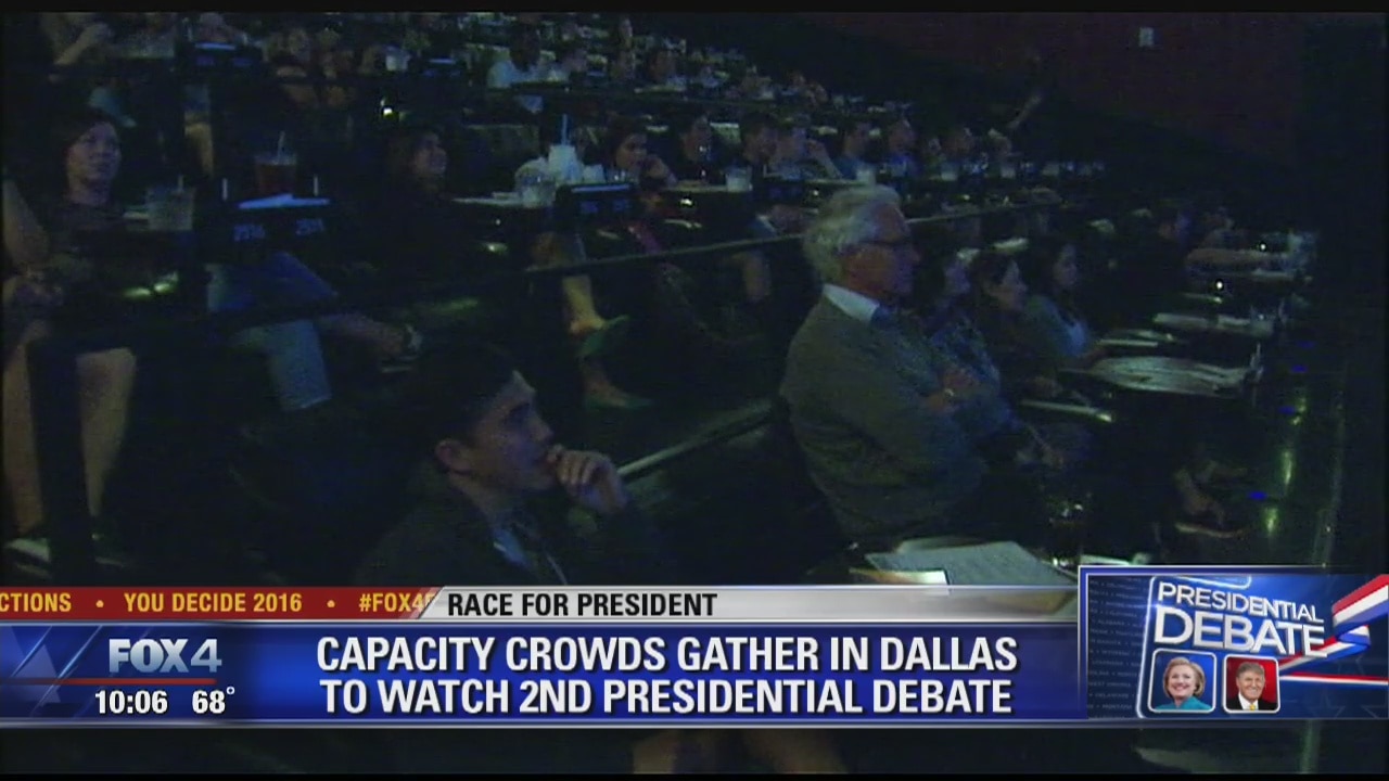 People watched the second presidential debate on the big screen at Alamo Drafthouse.