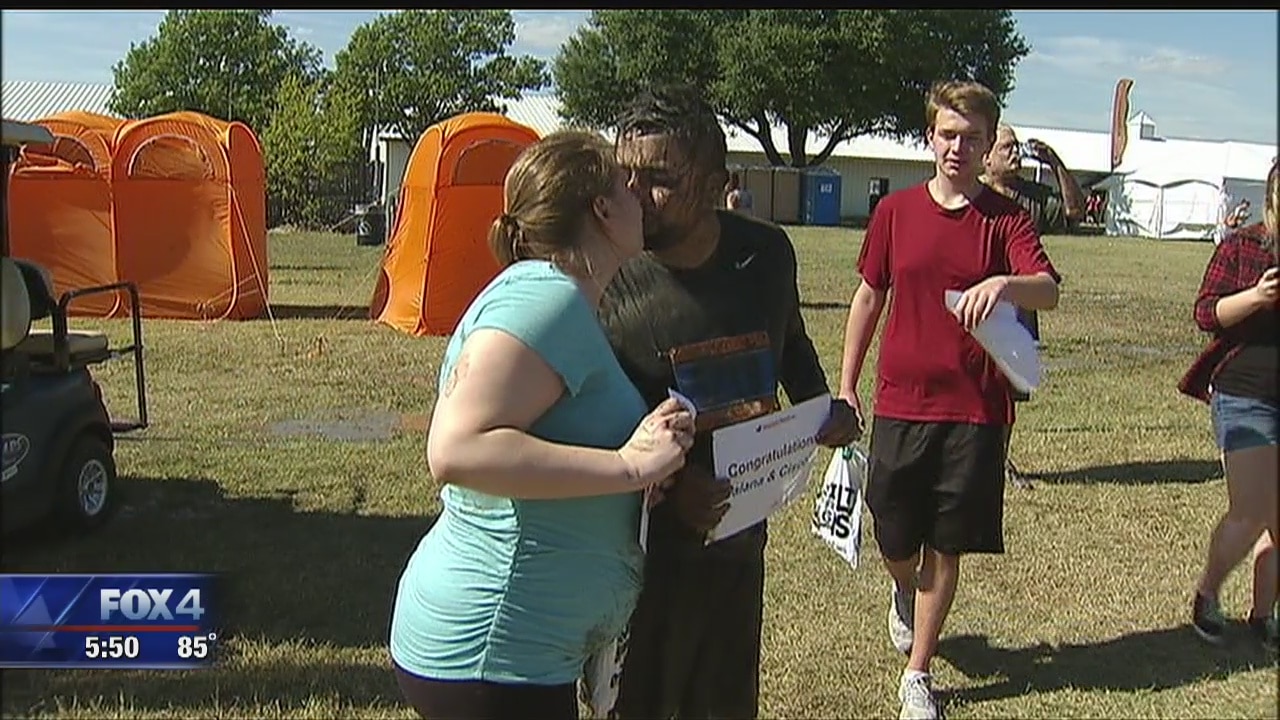 A man proposed to his girlfriend at the finish line of Muckfest, a fundraiser for the National Multiple Sclerosis Society.