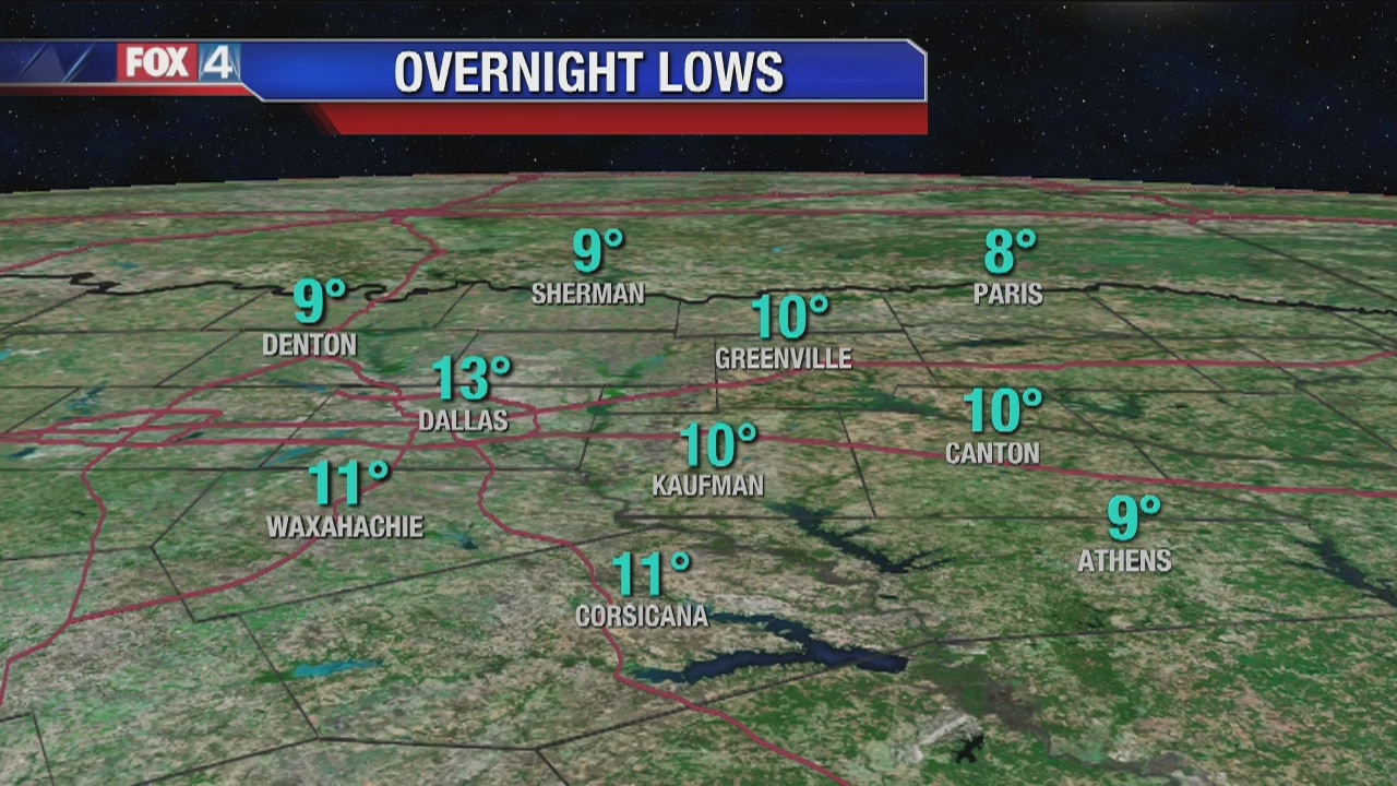 A hard freeze warning is in effect for all of North Texas on Tuesday night as temperatures will be at or below 10 degrees.