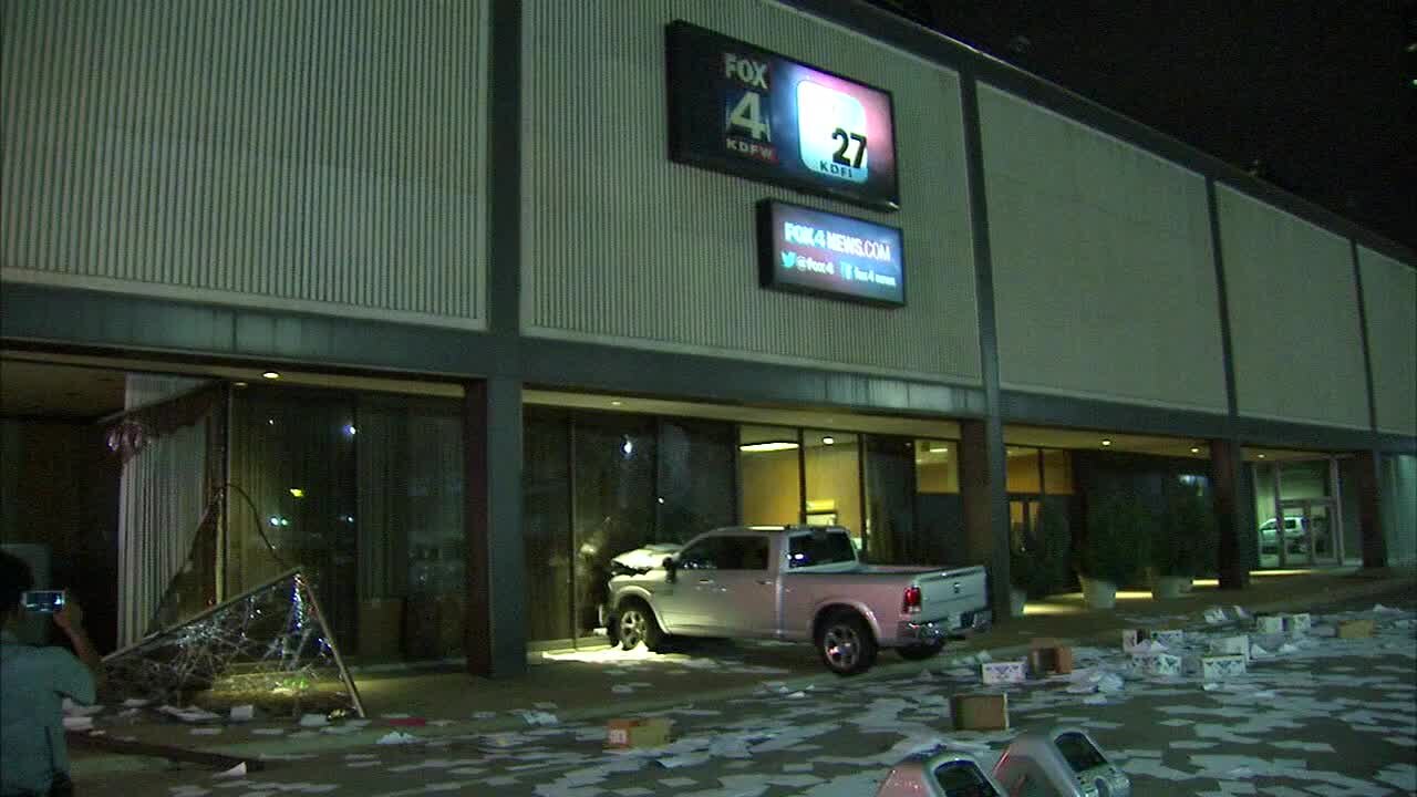 FOX 4 cameras captured the tense moments immediately after a man crashed into the FOX 4 building. Police have taken the man into custody.