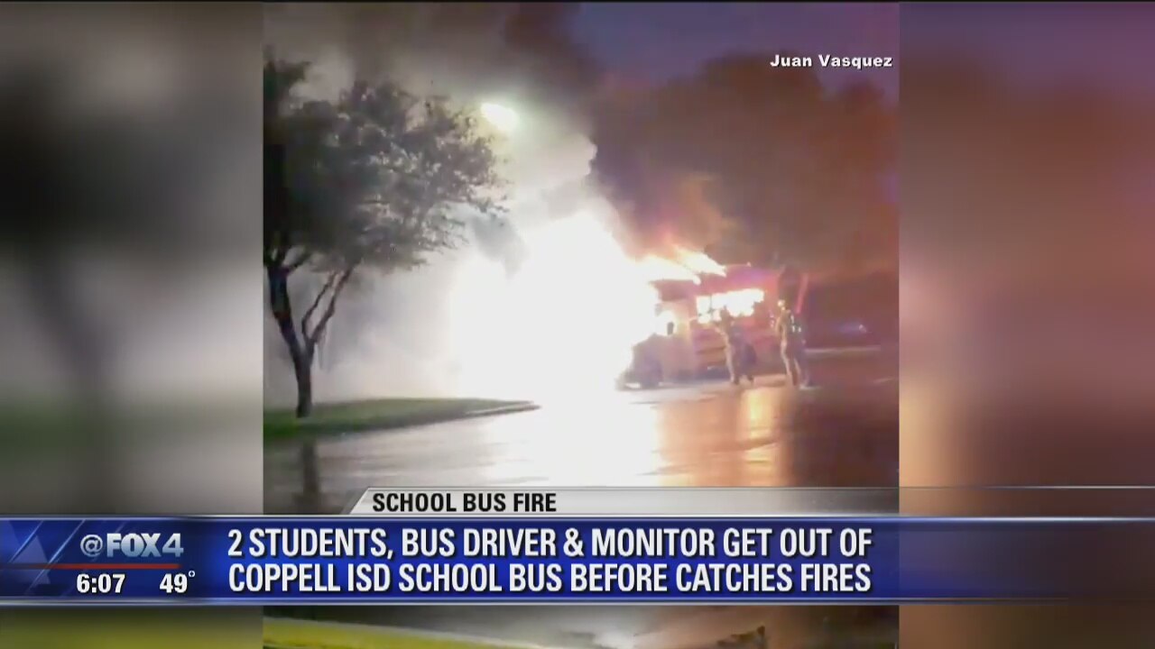 Coppell ISD school bus bursts into flames