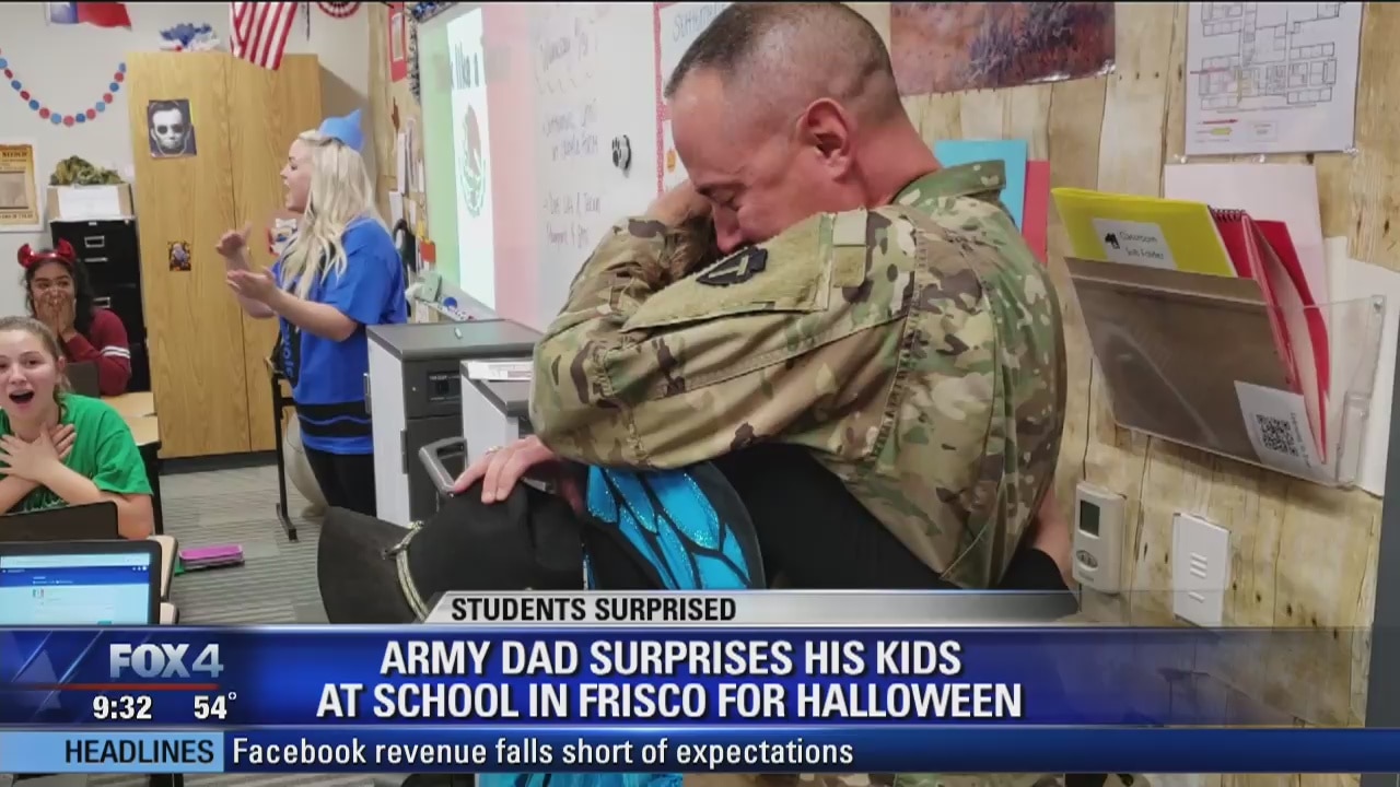 Military dad tricks kids with a treat for Halloween