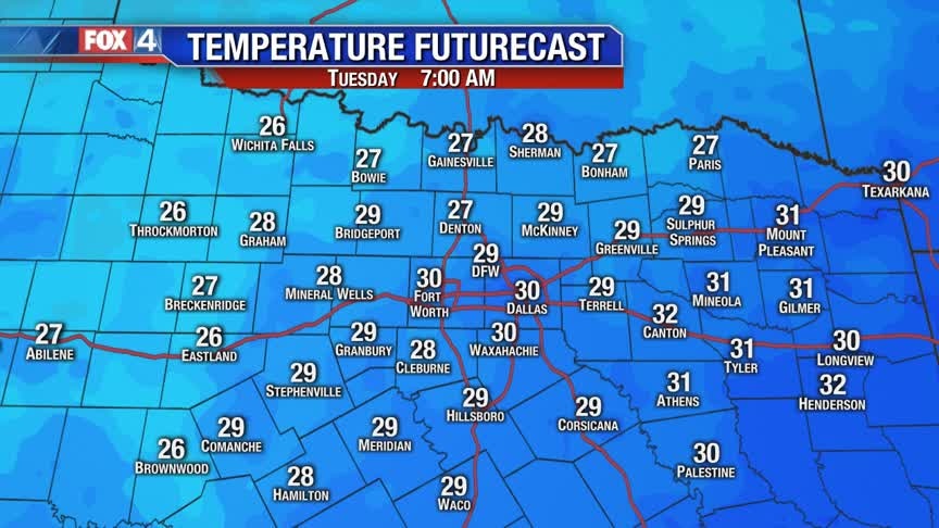 The rain has come to an end, and North Texas is left with strong northwesterly winds throughout the day. Afternoon temperatures stay in the 40s, with wind chills in the 20s. Skies clear late tonight, allowing a Hard Freeze for parts of the region. After the cold start Tuesday, ample sunshine gets us back to 50. Expect a slow warming trend through the rest of the week.