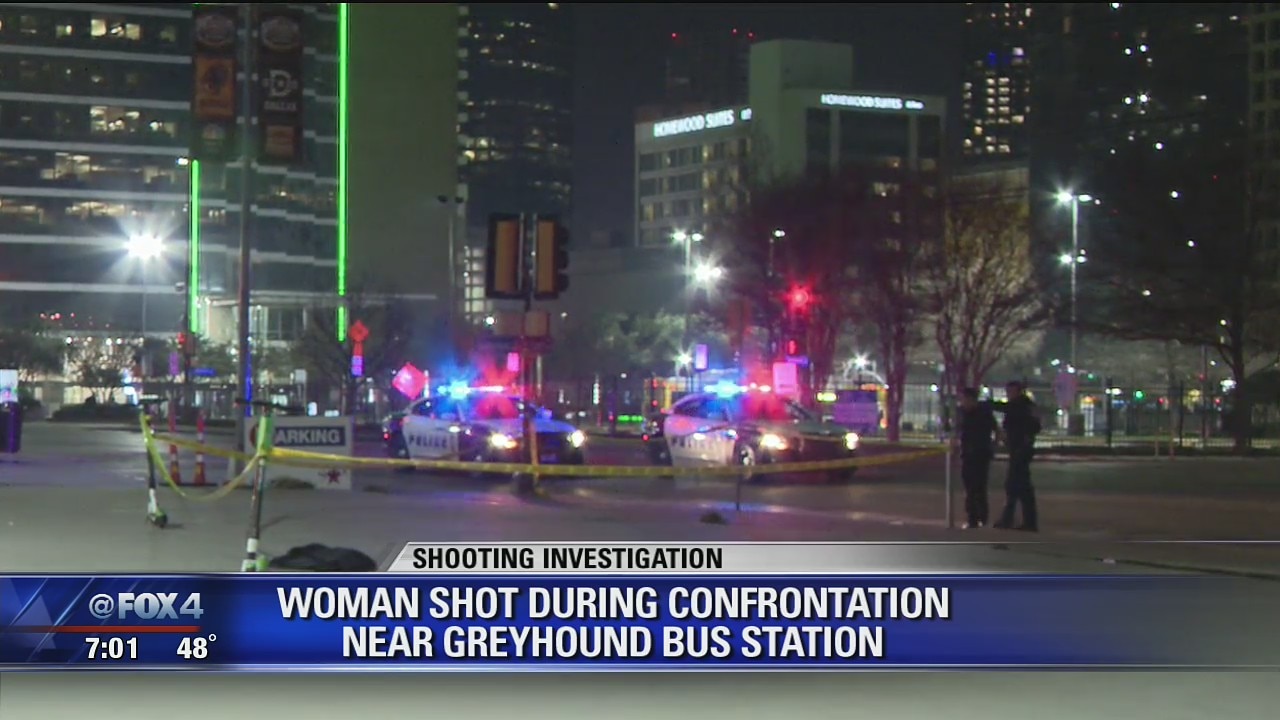 Woman shot during confrontation near Dallas bus station
