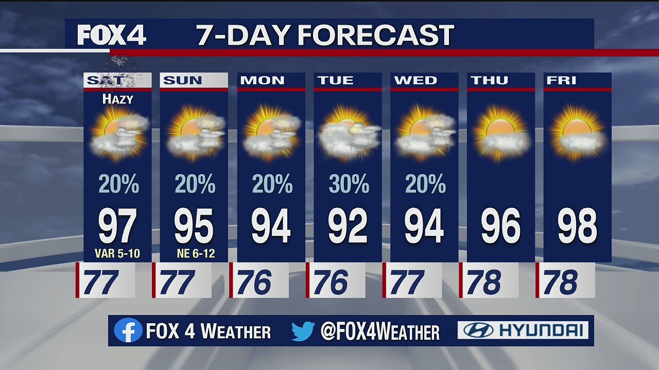 Chance of rain throughout the holiday weekend.