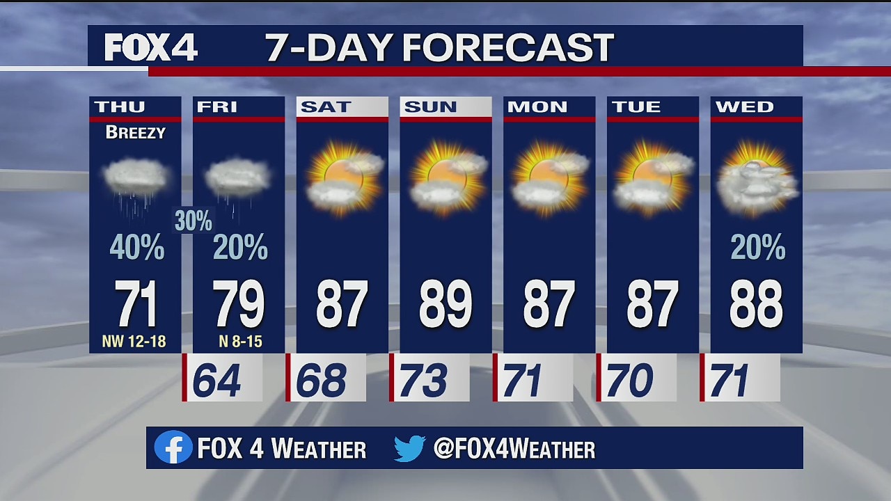 A record chill this morning comes with some lingering rain. The clouds and cool air will stick around most of Friday and then we'll have a sunny weekend in upper 80s. Nice!