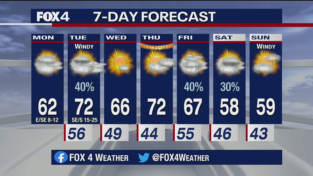 Mostly cloudy for Monday with temperatures getting into the low 60s.