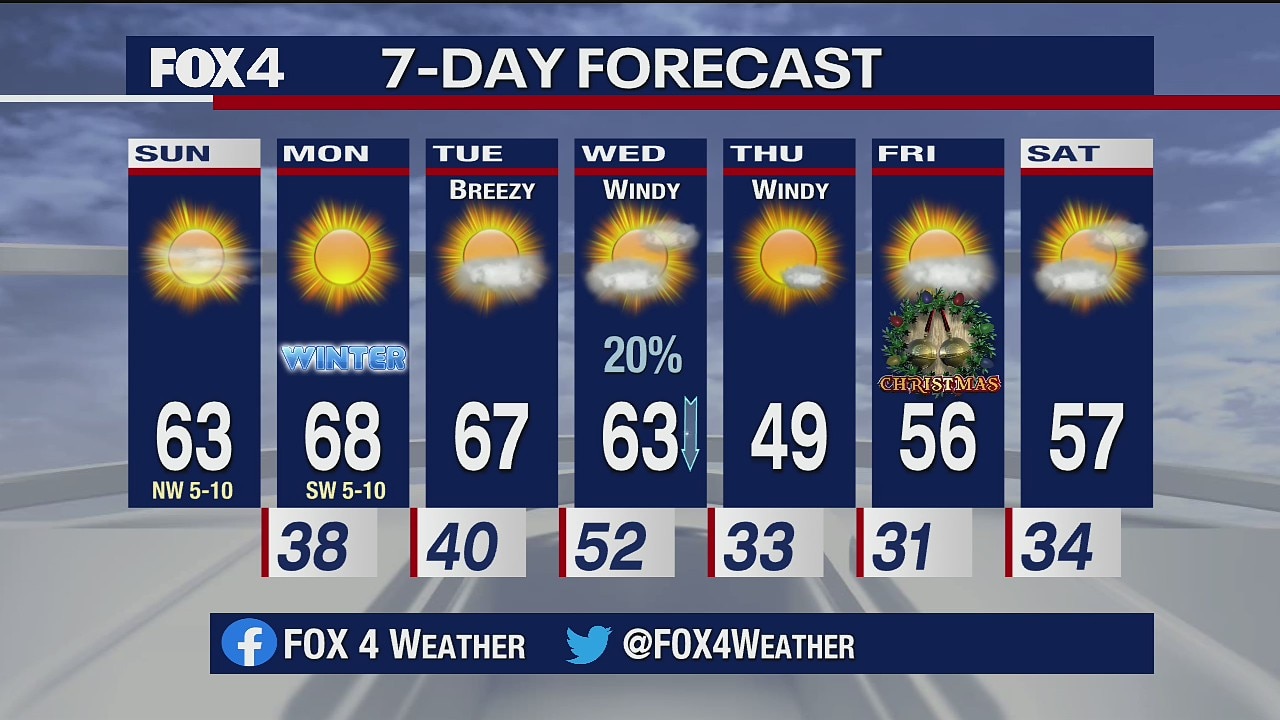 Temperatures should stay in the 60s, before a slight chill down on Christmas Eve.