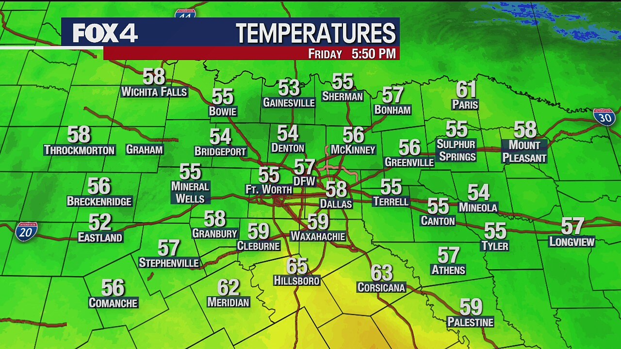 A bit of a cool down Friday, with temperatures dropping into the 50s in the evening hours.