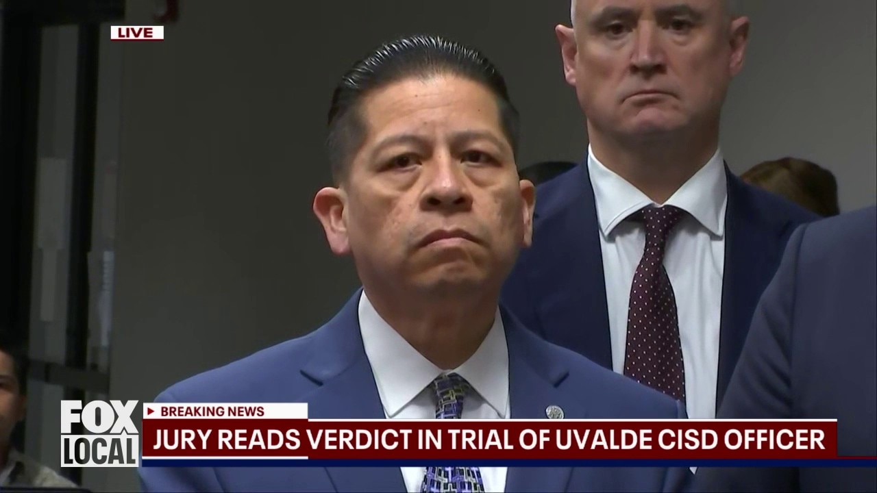 Former Uvalde police officer Adrian Gonzalez was found not guilty on all 29 counts of child endangerment related to the Ulvalde school shooting in 2022. He was visibly emotional as the verdict was read.