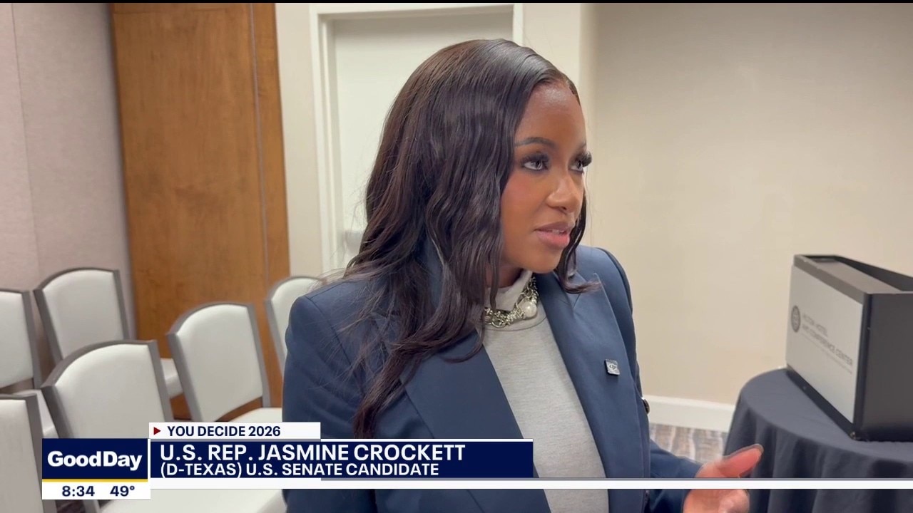 U.S. Senate candidate Jasmine Crockett talks about early voting and her opponent's recent news headlines. She was a guest speaker at the Texas Council of Alpha Chapters convention in College Station.