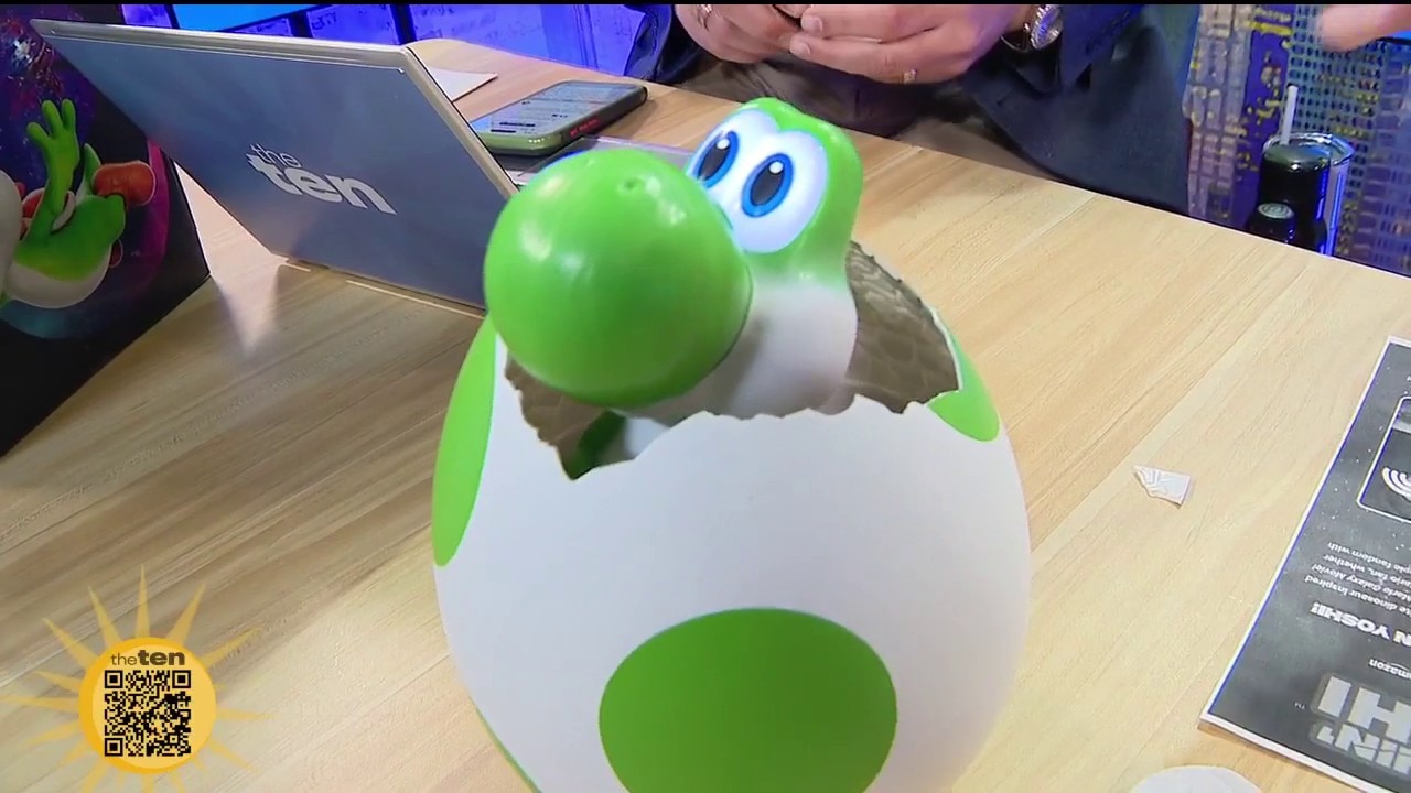 Steve Noviello and Paige Ellenberger unbox Hatchin' Yoshi, created by children's entertainment company Spin Master, for The Super Mario Galaxy movie.