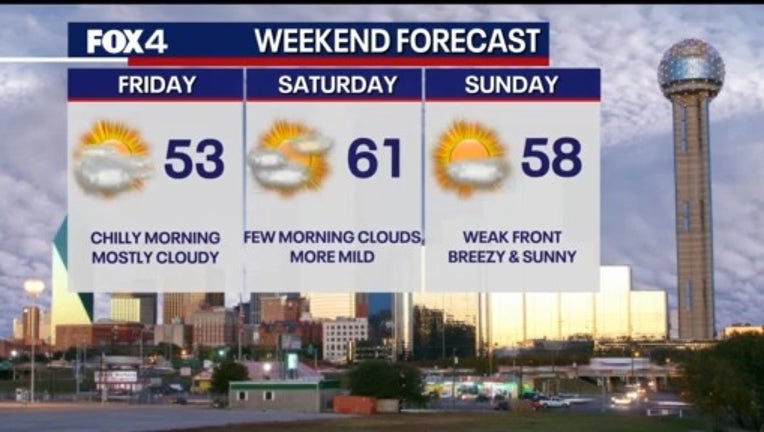 DALLAS - A pleasant, rain-free weekend is expected across North Texas, offering a break from the colder conditions earlier in the week.