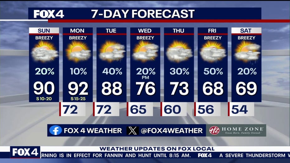 Conditions are expected to turn warm and humid on Sunday, with temperatures rising into the upper 80s to near 90 degrees by late afternoon.